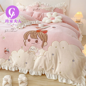 可爱公主风牛奶绒四件套冬季加厚加绒珊瑚绒被套法兰绒...