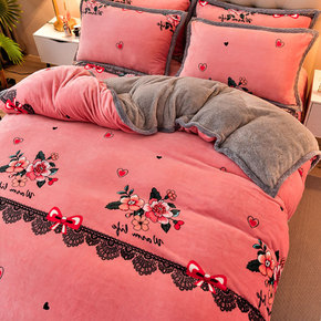 珊瑚绒四件套加绒加厚双面绒公主风法兰绒冬季牛奶绒被...