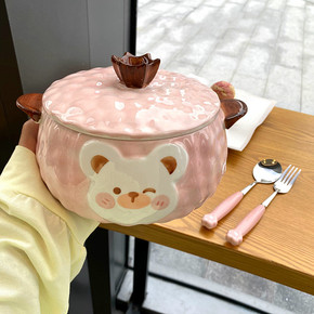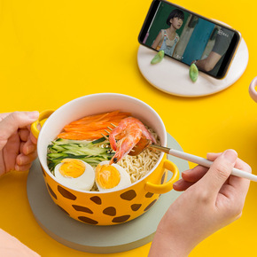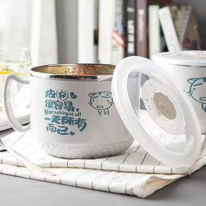 创意卡通泡面碗带盖有盖陶瓷可爱家用个性大号泡方便面...