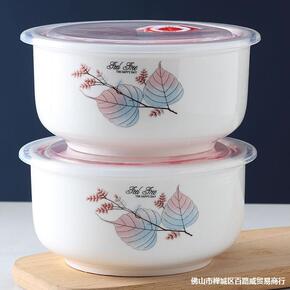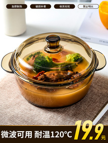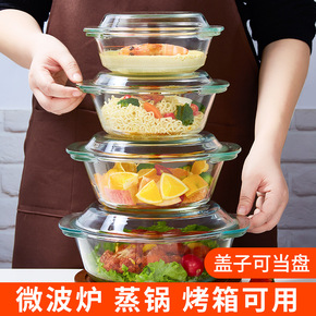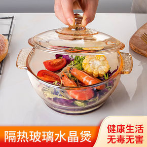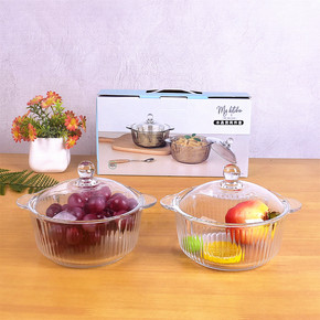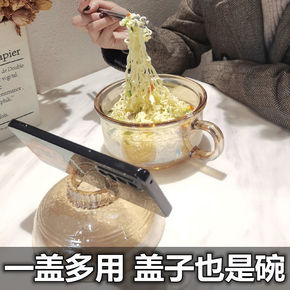 新款家用带盖玻璃碗两件套 透明玻璃水晶煲泡面碗汤碗...