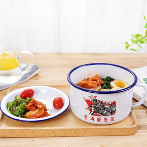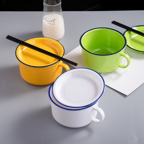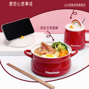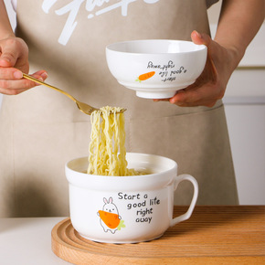 陶瓷泡面碗沙拉碗双耳汤碗学生宿舍方便面碗个性加厚泡...