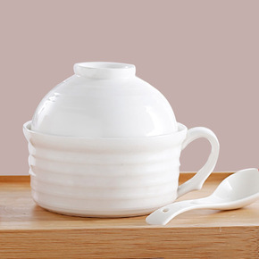 陶瓷泡面碗带盖杯碗纯白陶瓷碗可微波炉带把大容量饭碗...