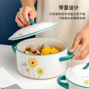 滋本家北欧双耳汤碗家用泡面碗带盖陶瓷网红餐具创意个...