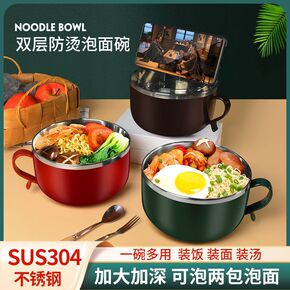 304大容量不锈钢带盖双层泡面碗 学生食堂快餐杯 ...