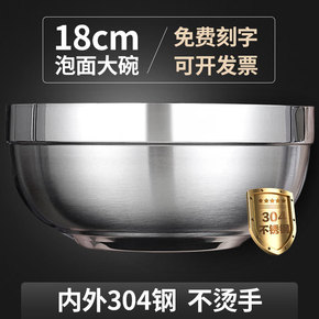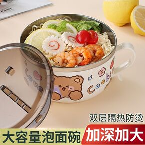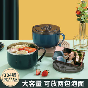 304不锈钢泡面饭碗 带盖大号碗学生宿舍易洗可沥水...