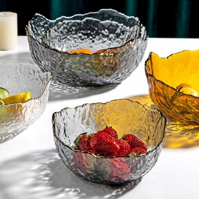日式锤纹金边透明沙拉碗餐具泡面碗网红甜品茶洗水果碗...