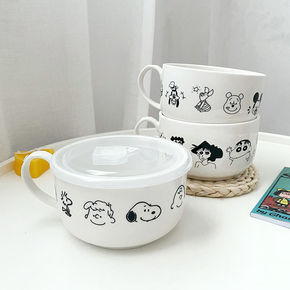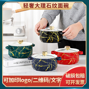 大号陶瓷泡面杯碗带盖带手柄方便面碗饭碗便当盒汤碗可...