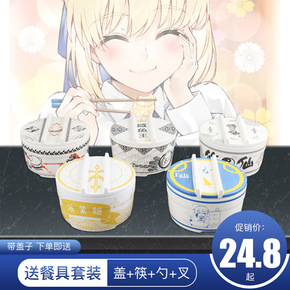 泡面碗陶瓷带盖ins学生宿舍便当盒可爱少女心创意带...