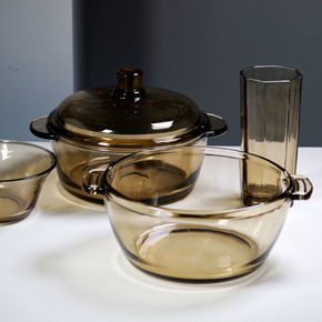 茶色玻璃碗带盖耐热微波炉带盖汤碗家用玻璃煲泡面碗水...