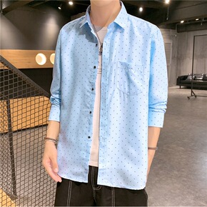 INS潮牌长袖衬衫男秋季港风潮流休闲碎花衬衣男士大...