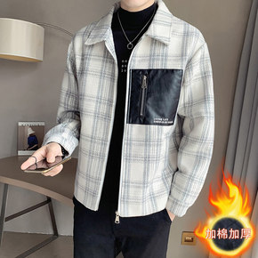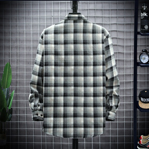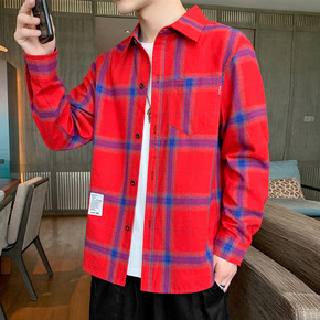 2021秋季新款潮流格子衬衫男港风长袖外套男士青年...