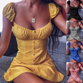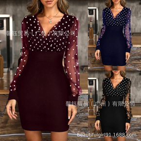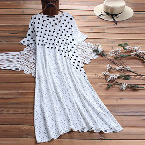 2020亚马逊款欧美连衣裙大码女装波点不规则法式连...