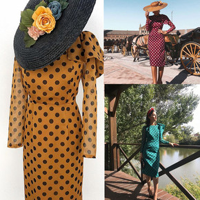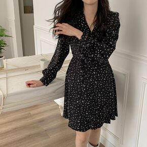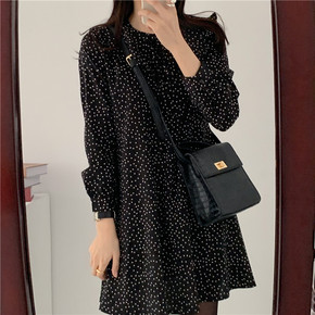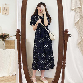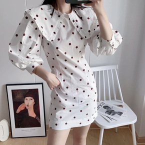2020新款春秋法式复古波点连衣裙女夏季收腰显瘦娃...
