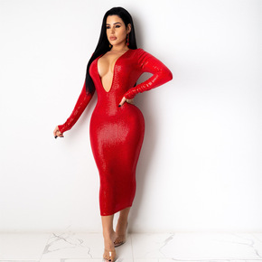 2021新款亚马逊独立站 欧美性感女装时尚印花V领...