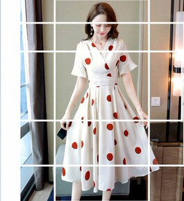 面料名称:聚酯纤维 主图来源:实拍有模特 货源类别:现货 风格:简约 图案:波点 工艺:数码...