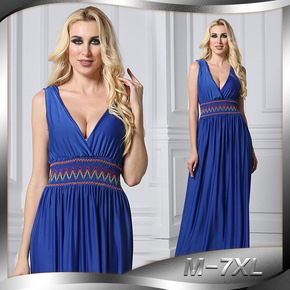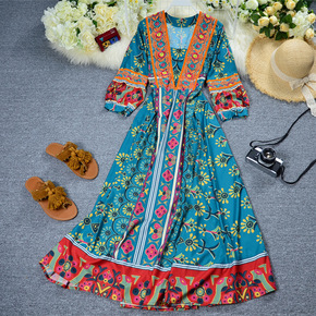 现货夏季亚马逊欧美女式马克西连衣裙波西米亚印花休闲...