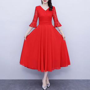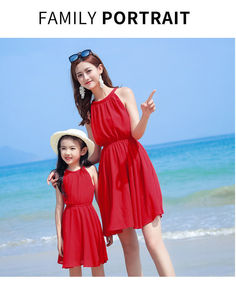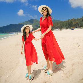 DMA41 亲子装红色沙滩裙 母女装波西米亚连衣裙...