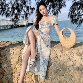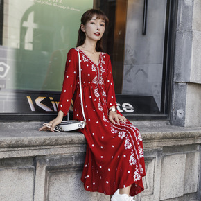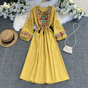 海边度假连衣裙女波西米亚沙滩裙超仙民族风绣花灯笼袖...