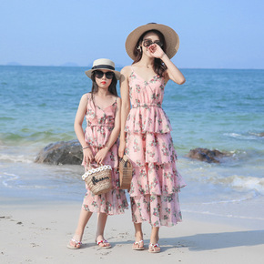 亲子装夏装2019新款潮海边度假沙滩父子套装母女裙...