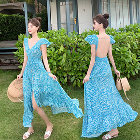 三亚海边度假连衣裙夏旅拍沙滩裙波西米亚小心机性感露...