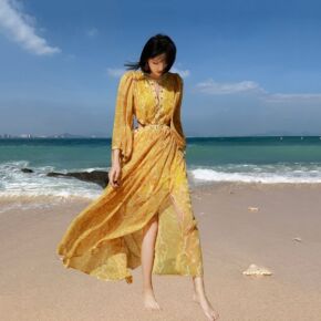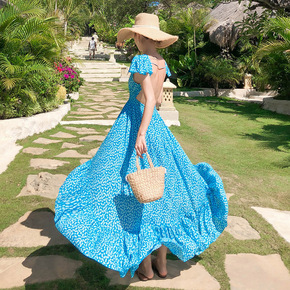 大裙摆长款度假a字裙连衣裙海边仙女裙F339...