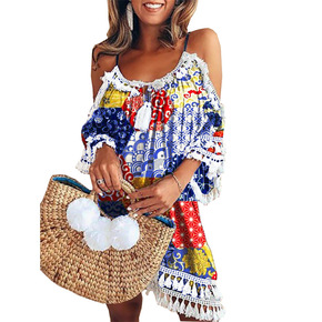2022年夏季吊带裙流苏印花连衣裙休闲迷你短裙波西...