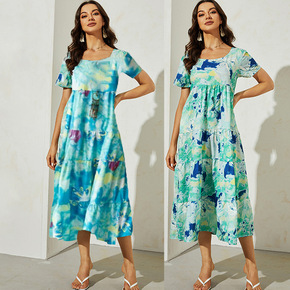 2022女装 夏季扎染印花连衣裙波西米亚连衣裙 度...