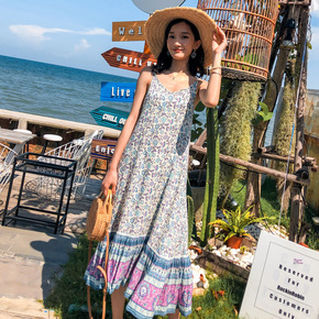 泰国吊带连衣裙旅游衣服女夏民族风出游显瘦波西米亚沙...