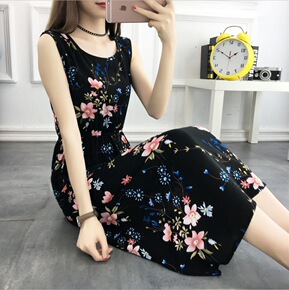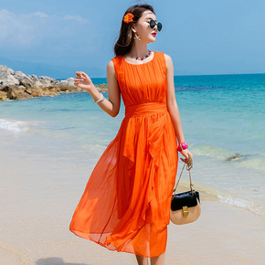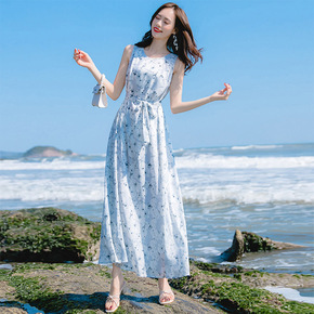 清仓 夏季高腰大摆雪纺吊带连衣裙波西米亚海边度假沙...