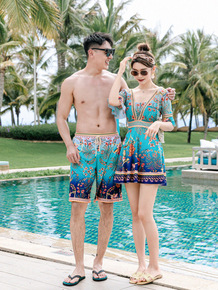 2020新款外贸穆斯林泳衣 女士保守泳衣 花朵印花...
