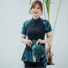 加肥潜水服女士水母时尚浮潜长袖大码胖mm200分体...