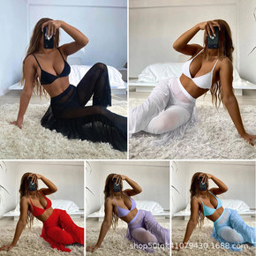 DY6987欧美女装亚马逊独立站性感泳衣纯色网纱套...
