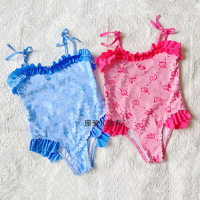 儿童潮G字母印花设计荷叶边泳衣1-10岁女婴儿De...