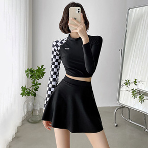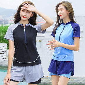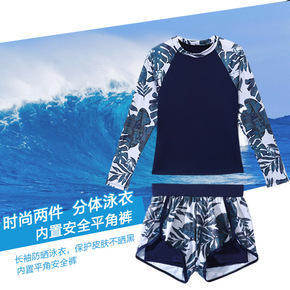 网红爆款游泳衣女士分体长袖保守遮肚显瘦学生初中生上...