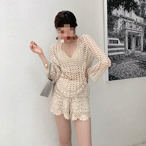 包邮泳衣女夏季聚小胸分体针织比基尼遮肚显瘦泡温泉沙...