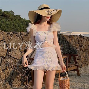 韩国ins风分体平角裙式新款泳衣女学生保守遮肚显瘦...
