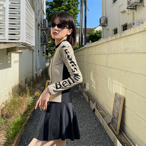 2021新款复古ins风泳衣女夏连体保守裙长袖遮肚...