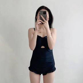 黑色性感少女显瘦连体泳衣女泡温泉夏2021新款IN...