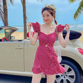 吴宣仪同款2021新款格子温泉分体裙式泳衣女夏保守...