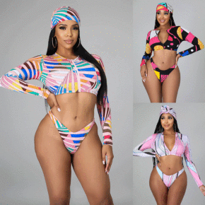 2020新款跨境泳装运动马甲线分体印花泳衣女欧美性...