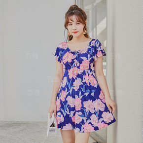 2021新款时尚泳衣女夏连体裙式遮肚保守显瘦小胸聚...