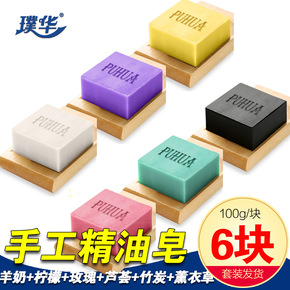 手工皂100g*6块 精油皂羊奶竹炭薰衣草沐浴洗澡...