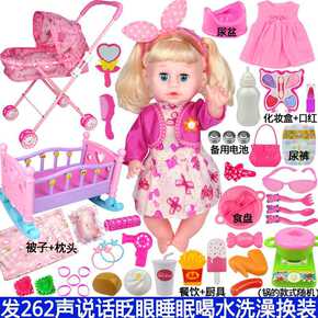 会说话喂奶洋娃娃玩具仿真婴儿童手推车小女孩宝宝过家...