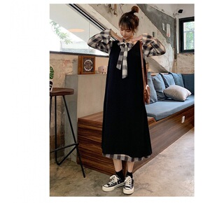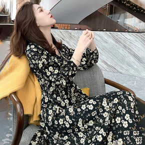 实拍2020年新款秋冬洋气减龄遮肚子显瘦长袖阔太太...
