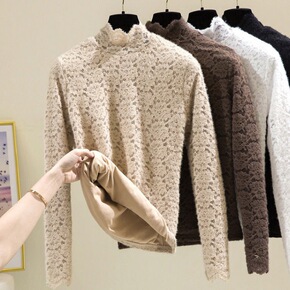 【加绒加厚/薄款】半高领蕾丝打底衫2022秋装新款...