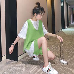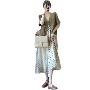 大码2022法式洋气吊带+裙子两件套胖妹妹显瘦遮肚...