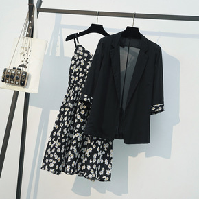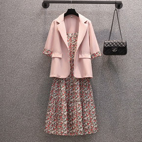 大码女装夏季洋气减龄西装外套胖妹妹显瘦遮肉碎花连衣...