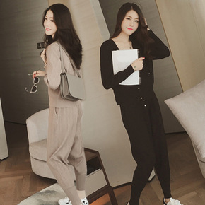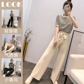 大码洋气上衣2020新款女装春装阔腿裤两件套胖长袖...