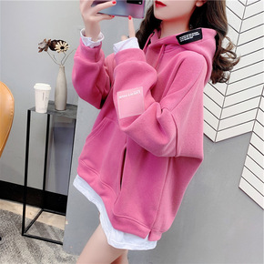胖mm假两件薄款卫衣女2021新款宽松洋气减龄春秋...