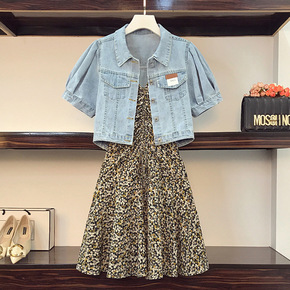 2022夏季新款大码女装胖妹妹遮肚显瘦牛仔外套碎花...